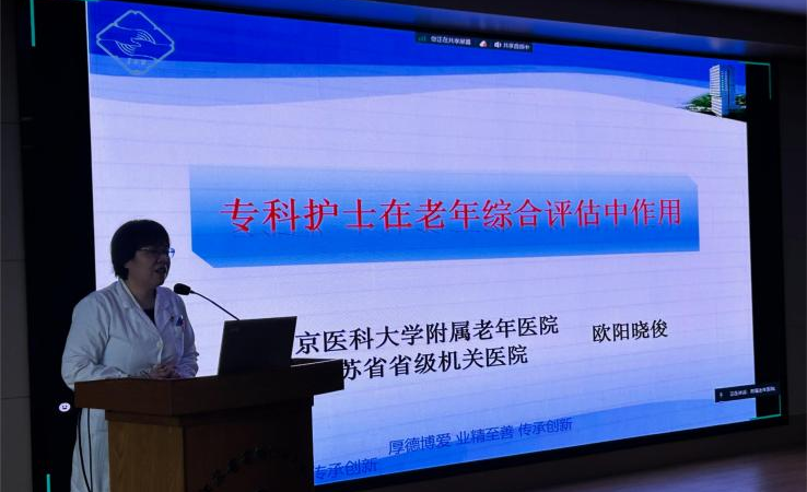 活动伊始,欧阳晓俊主任首先进行了主题分享。她以丰富的临床经验和深厚的专业知识,深入剖析了老年专科护士在老年综合评估中的重要作用,并分享了医护团队在临床老年综合评估实践中的经验和做法,强调了老年护理专科护士在提升老年人生活质量、促进健康老龄化等方面的积极作用。