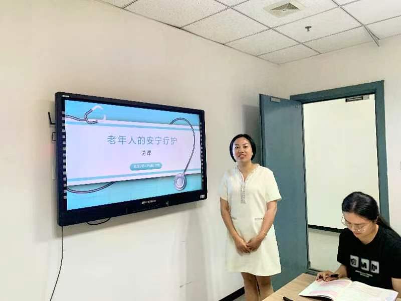 紧接着,万霞老师进行了精彩的说课环节,选题为人卫版《老年护理学》的第十章《老年人的安宁疗护》。她从学情分析、教学目标设定、教学方法选择、教学设计与过程,到教学评价与成效,全面阐述了她对这一章节的独特理解和把握。