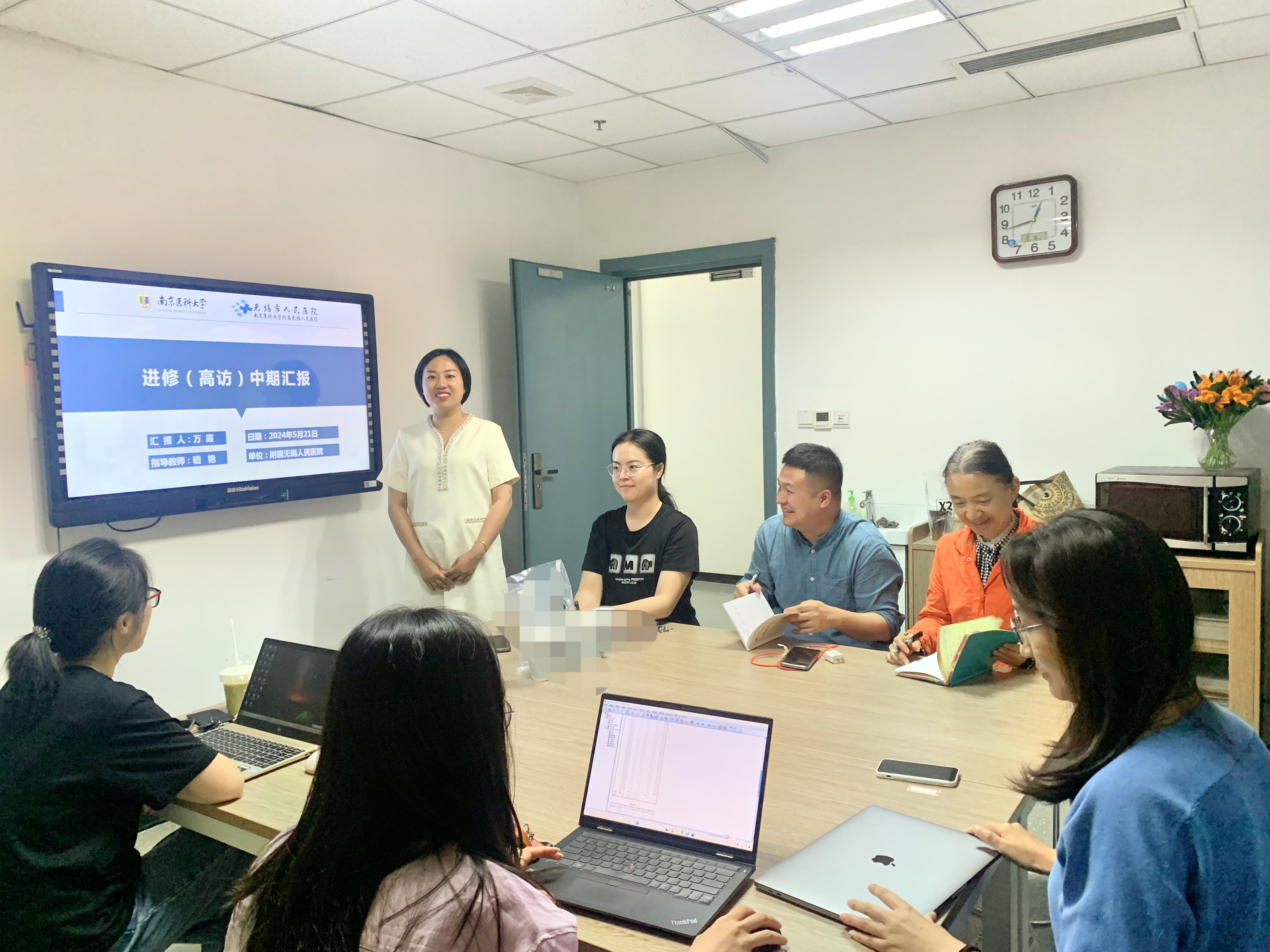 为进一步巩固附属医院进修教师来院学习成果,扩大访学进修辐射效应,按照《mk体育在线官网接收附属医院师资培养进修人员管理办法》要求,护理人文与管理学系于5月22日中午,在学海楼C453组织召开了来自附属无锡人民医院进修教师万霞的中期汇报会。此次汇报会由护理人文与管理学系的杨如美主任亲自主持,同时邀请了万霞的进修导师嵇艳副院长以及学系全体成员共同参与。