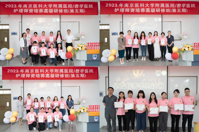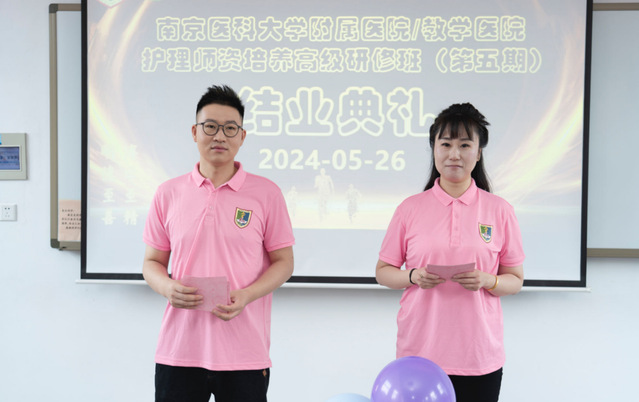 5月26日,护理学院举行2023年附属医院/教学医院护理师资培养高级研修班(第五期)结业典礼,全体院领导、教师代表,研修班全体学员参加了结业典礼。典礼仪式由研修班班长、南京医科大学附属儿童医院张新和王飞祥主持。