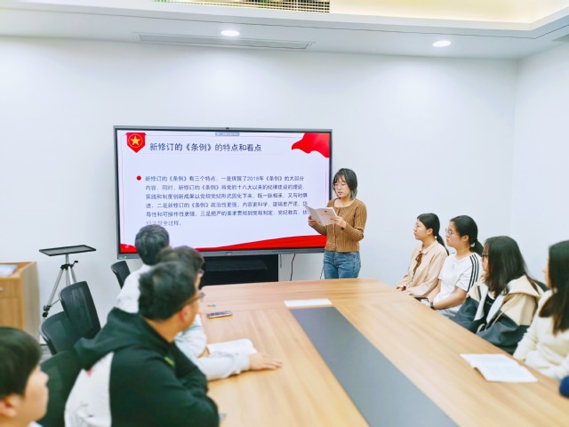 高洁:近期,我深入学习了《条例》,我深刻感受到它是关于党的纪律和纪律处分方面的一部重要的党内法规,是维护党的团结统一的有力武器,是保持党的先进性和纯洁性的重要条件,是党的路线、方针、政策得以实现的重要保证。党纪是党的生命线,是全体党员行为的准则和底线。纪律的生命力在执行,再好的纪律如果不加以贯彻执行,都是得不到任何效果的,我会以《条例》为“戒尺”,时刻约束自我行为。