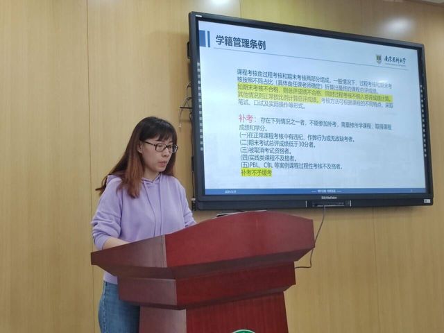 会议伊始,“微讲堂”负责人王泽爽同学向同学们介绍了“微讲堂”成立的初衷和帮扶举措,鼓励学业预警的同学们积极参与,掌握科学的复习方法,有效提高考试成绩。随后,顾老师就《学籍管理规定(2023版)》中的考核与成绩记载、留降级、退学、学位授予等章节展开详细讲解,明确学校对于本科生学业的各项要求;对学业预警同学进行考风考纪教育,提醒同学们合理规划复习时间,以诚信自律的方式通过考试。顾老师借由学长学姐的事例,鼓励同学们锚定学习目标,树立不抛弃不放弃的信心,把握宝贵光阴,抓紧在考试月冲刺。