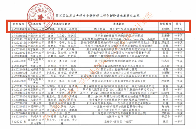 图片:“巨鲨杯”第五届江苏省大学生生物医学工程创新设计竞赛主办单位——江苏省生物医学工程学会