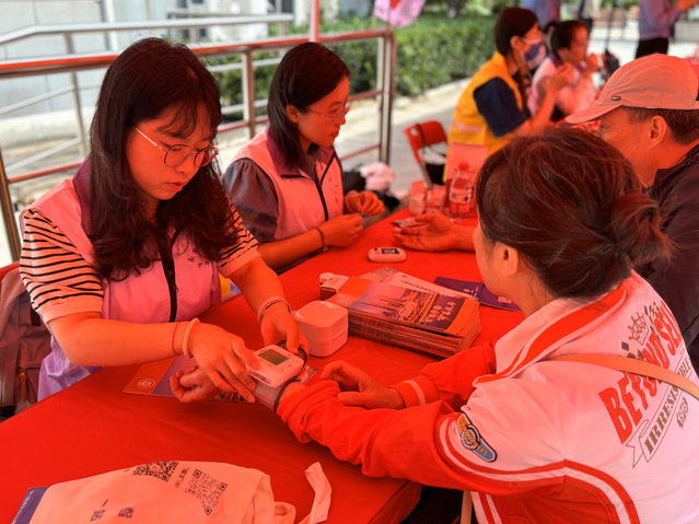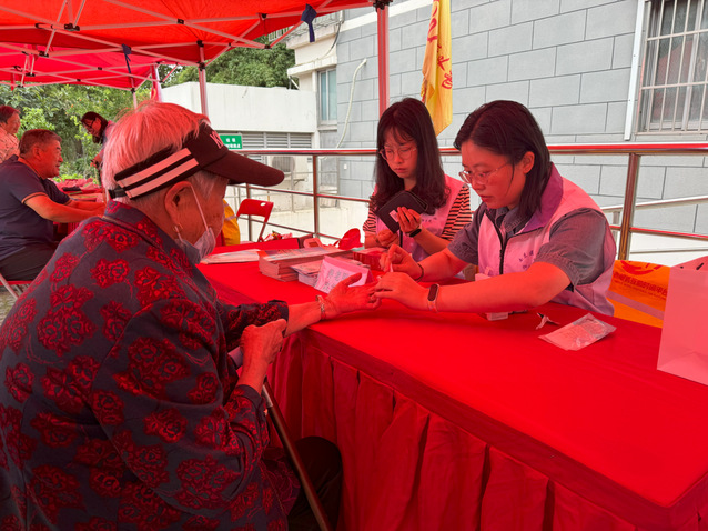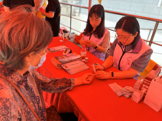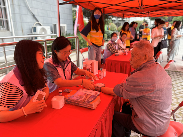 志愿者们在广场为社区老年居民提供血压、血糖测量,护理知识科普等健康检查和咨询服务。在团队成员的引导下,老年居民们有序接受各项检查,并根据检查结果提供个性化的健康建议。活动中,支部党员还走进社区居民家中,开展入户探望,将服务真正送到老年人身边。