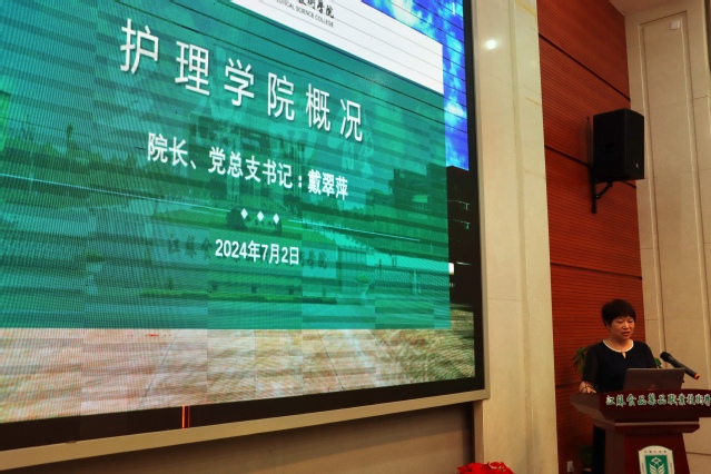 首先,两院领导分别介绍各自情况。张军副校长从发展历程、院部设置、师资队伍、人才培养、科研与社会服务、产教融合、国际交流与合作及未来规划情况等7个方面介绍了江苏食品药品职业技术学院的情况。戴翠萍院长从MK体育(中国)的发展、七色党建工作开展、实践基地建设、毕业生就业等4个方面介绍了江苏食品药品职业技术学院MK体育(中国)的情况。许勤院长从党建工作、办学理念、护理学专业认证、WE-CARE教育教学理念、师资队伍、招生规模、科研成果等7个方面介绍了mk体育在线官网的情况。