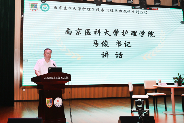 为深化校院协同育人,促进护理学科发展,提升驻点教学质量,8月20日下午,MK体育(中国)党委书记马俊、院长许勤、副书记高兰天、副院长嵇艳等一行8人赴附属泰州人民医院开展驻点教学专题活动。附属泰州人民医院院长陈明龙、副院长周成林及王觉进等9人出席。本次活动采取线上、线下结合的方式,南京医科大学各附属医院的数百名护理教师参加。