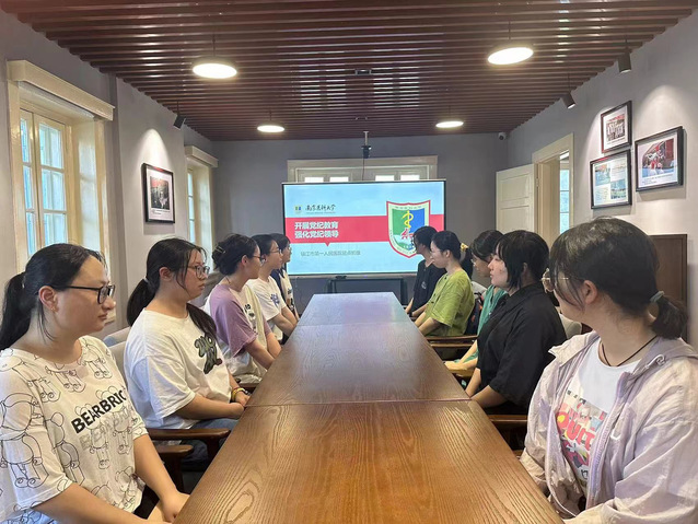 7月18日,南京医科大学第一附属医院组织实习生开展党纪教育活动,实习班主任张阳春老师强调了党纪教育的重要性和必要性,并给护理实习生们深入浅出地讲解了党的基本理论、党的纪律规定以及医护人员的职业道德等内容。最后实习大组长刘沐寒带领同学们观看了警示教育纪录片,进一步加强护理实习生的党性教育和纪律意识,提升护理实习生的整体素养。