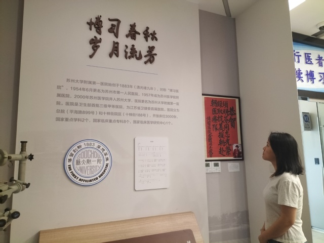 8月5日,苏州大学附属第一医院实习生们走进院史陈列馆,同学们在张张照片、本本任命书中了解医院由小变大、由弱变强的发展历程,通过对医院140载发展历程的全景展示和在中国共产党领导下医院拼搏奋斗的内涵挖掘,实习生们在院史中汲取精神动力,积聚奋进力量,感知医学前辈们的坚韧品质。
