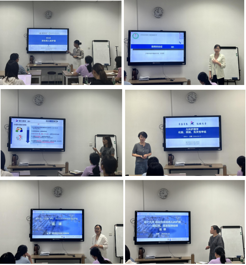 2024年9月11日上午9:00,临床护理学系在江宁校区学海楼C514组织开展2024-2025学年第一学期新教师试讲活动。活动由学系副主任唐慧婷主持,邀请了学院督导孙国珍、丁亚萍,学系主任陈明霞、原学系副主任董玲担任点评专家,各课程负责人、研究生助教及进修老师均参与了本次活动。学院新进教师金燕飞、第一附属医院教师许贤荣、第二附属医院教师赵静、汤燕以及附属儿童医院教师居雅蓓、孟慧为本次试讲新教师,他们将在本学期首次参与《外科护理学》、《内科护理学》、《儿科护理学》课程的理论教学工作,且已通过课程、医院层面的首轮试讲。