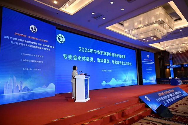 许勤院长主持2024年中华护理学会高等护理教育专委会全体委员、青年委员、专家库专家工作会议,并受邀做题为“临床护理教学同质化管理与实践”的大会主旨演讲,分享了学院在“大健康,大护理,深融合,强合作”的方针指导下,从“护教协同,产教融合”“院院融合,协同育人”“同质化管理,持续改进”三方面着手搭建学院-医院协同融合的一体化平台,培育和推进临床护理教学改革与科研成长的实践经验及有效探索。
