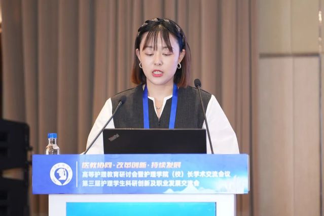 附属苏州医院李霞与张润斐老师分别在“教学模式创新”“学生培养与带教”高教分会场,做题为《基于建构主义的jigsaw教学法结合多元案例模拟对护理本科生学习态度、自主学习能力及自我效能的影响》《实习护士专业价值观、职业尊重感与带教老师关怀行为的相关性分析》的大会发言。李霞老师介绍了在驻点班急救技能见习教学过程中使用创新性教学方法提高学生自主学习能力的研究,张润斐老师介绍了带教老师关怀行为对提高实习生职业信念的具体做法。附院两位老师的精彩展示作为院院融合促进教学能力提升的侧影,也充分体现了附属医院对培养护生能力的积极努力。