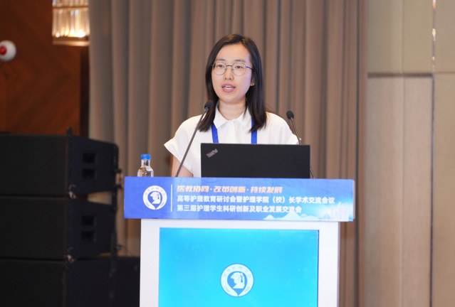 临床护理学系雷阳老师在“专业建设与人才培养”分会场做题为《面向卓越护理人才培养的双师型专家队伍建设与实践》的口头汇报,介绍了学院在培养卓越护理人才过程中,实施“院院融合”战略,通过6个方面的改革举措,培养了一支专兼结合、科教融合的双师型专家队伍,取得较好育人成效的研究成果和实践经验。