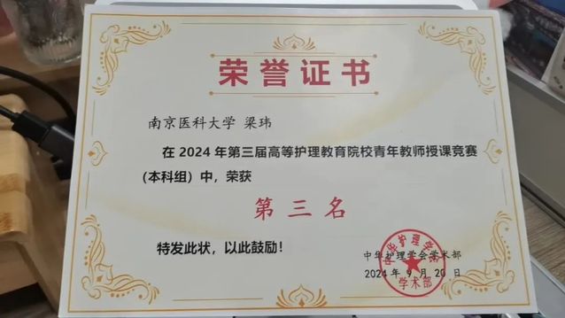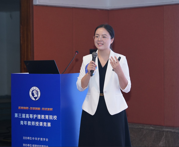 护理人文与管理学系梁玮老师参加了同期举办的第三届高等护理教育院校青年教师授课竞赛。梁玮老师参赛的题目是“共情表达技能”,围绕如何实现共情式护患沟通,在学院专家和课程团队的指导下,精心设计课程内容、教学方法和课程思政元素,以自信大方的教态完成了比赛。荣获本科组第三名。