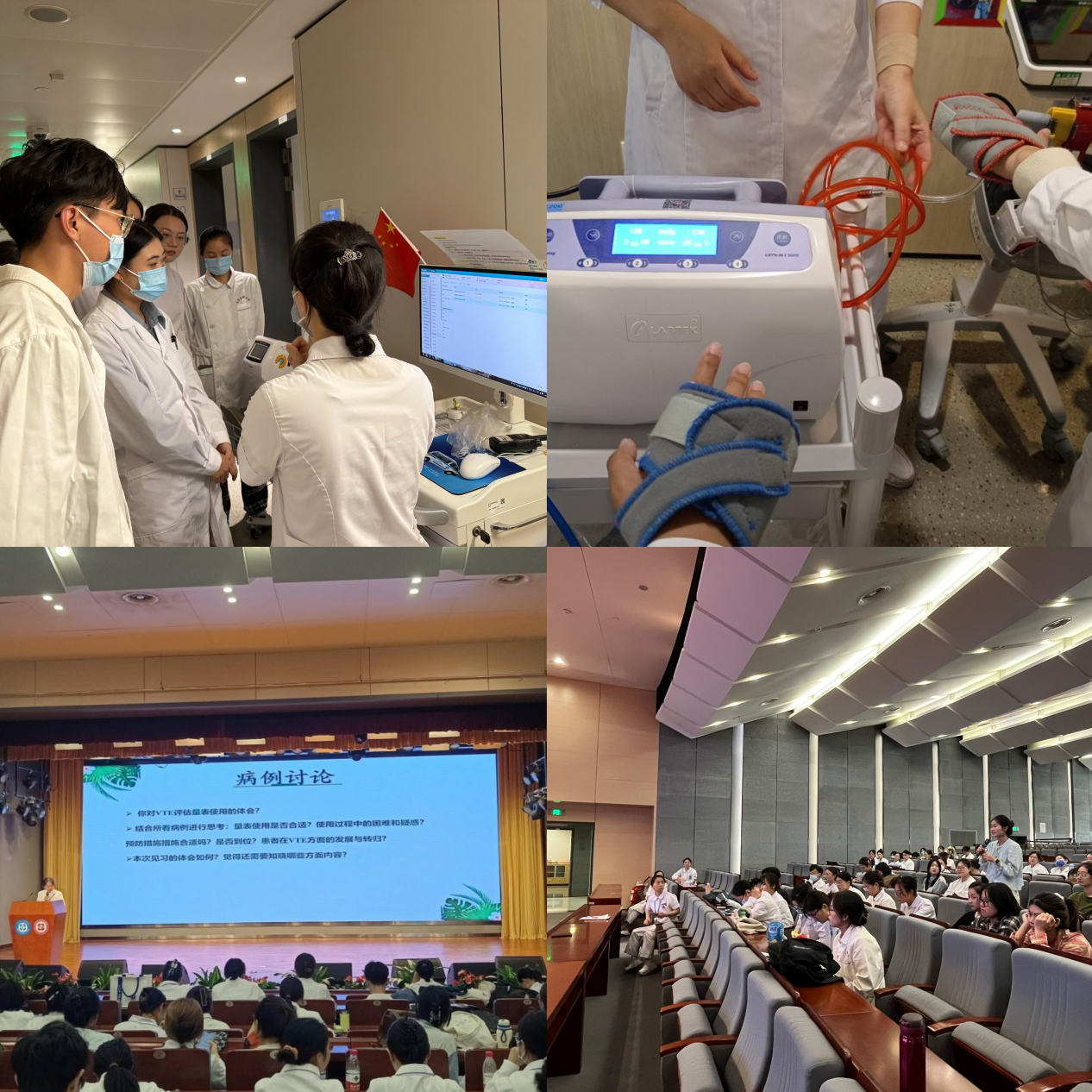 10月18日,同学们通过预先在学堂在线学习静脉血栓栓塞症风险评估工具之后,再进入临床实践环境深入学习临床决策系统在深静脉血栓(VTE)评估中的应用,并熟悉VTE评估量表的实际操作。通过结合病例学习,同学们全面掌握了VTE的评估和预防措施。活动期间,大家分组进行实地操作练习,了解VTE相关预防护理措施的实施,并掌握相关的护理操作技巧。此外,各组还进行了病例汇报和讨论,学习最新的团体标准和专家共识,从而紧跟临床专科的最新进展。