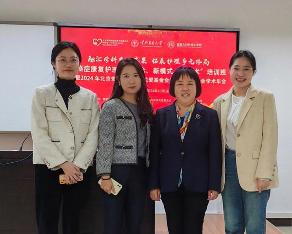 2024年10月18日-20日,由北京爱谱癌症患者关爱基金会、首都医科大学MK体育(中国)、首都医科大学对外培训学校共同主办的2024年北京爱谱癌症患者关爱基金会护理专业委员会学术年会于北京市召开。本次会议以“融汇学科交叉成果·拓展护理多元格局”为主题,旨在推动青年学者开展创新研究与提高业务能力,促进癌症康复护理领域的全面发展。我院SPRING肿瘤康复与安宁疗护团队金燕飞副教授携2024级硕博连读生郭银宁(导师许勤教授)与2022级硕士研究生陈一萌(导师许勤教授)受邀进行系列主题大会发言。