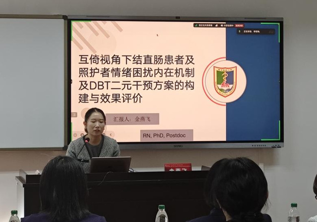 金燕飞老师在“护理研究方法与课题设计讲座”主题报告中作题为《互倚视角下结直肠癌患者及照护者情绪困扰内在机制及DBT二元干预方案的构建与效果评价》的汇报,该报告聚焦结直肠癌肠造口患者与家庭主要照护者二元体的情绪困扰,探讨二元体情绪困扰的影响因素和主客体互倚机制。通过主客体互倚模型分析,得出肠造口患者与家庭主要照护者的亲密关系和痛苦表露在感知压力对情绪困扰的影响中起中介作用,且存在主客体互倚机制,提示在改善患者和照护者情绪困扰时,应关注两人群的亲密关系和痛苦表露,这一结论为制定针对肠造口患者及其照护者情绪困扰干预方案和实施方法提供实证依据。