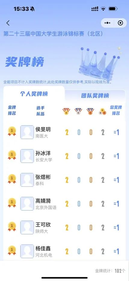 10月23日,“洲克·泳者之星”杯第23届中国大学生游泳锦标赛(北方赛区)在兰州奥体中心百合游泳馆拉开帷幕。赛事共吸引北京大学、清华大学、北京体育大学等80所高校代表共798名运动员及教练员参与。其中,来自mk体育在线官网2022级学子侯旻玥斩获女子甲组200米自由泳及400米自由泳金牌。