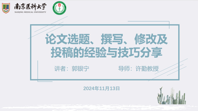 郭银宁同学结合亲身实践经历和感悟,分享了论文写作从选题、撰写、修改及投稿等一系列过程的经验与技巧。针对英文写作和中文写作的不同之处,她分别阐述了相应的注意事项和实用技巧,并予以最真挚的建议。最后,她建议同学们合理设立目标,建立良好心态同时多与周围人交流。比起短期直接结果,要更加关注重视长远的成长和收获。