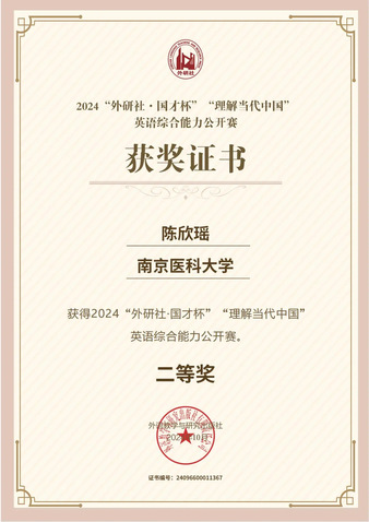 此次获奖不仅是对陈欣瑶同学辛勤努力的肯定,也彰显了mk体育在线官网在英语教学及综合素质教育方面的卓越成果。希望通过此次比赛,切实提升我院学子语言能力和文化素养,增加对当代中国的深刻理解,为未来的发展打下坚实的基础。
