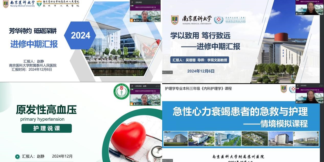 为进一步巩固附属医院进修教师来院学习成果,搭建教育教学交流平台,扩大访学进修辐射效应,按照《mk体育在线官网接收附属医院师资培养进修人员管理办法》要求,我院基础与社区护理学系于12月6日上午,线上组织召开了2024下半年进修教师中期汇报、试讲活动。本次活动由学系主任季明辉主持,附属苏州医院吴珊珊、附属泰州人民医院赵静两位老师分别进行汇报,基础与社区护理学系全体老师参加了本次活动。