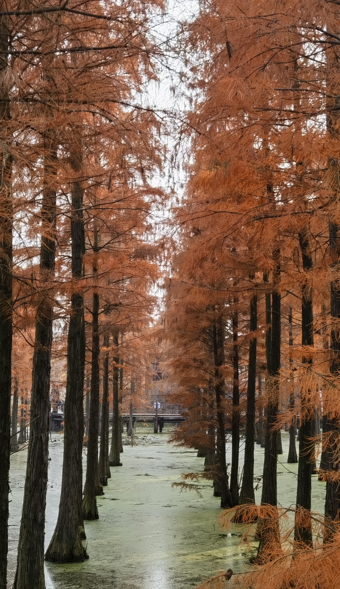 时值深秋,六合池杉湖畔宛如仙境。湖面波光粼粼,闪烁着迷人的光芒;池杉林则红得热烈如火,仿佛是大自然精心绘制的秋日画卷。大家或悠然漫步于栈道上,或乘船穿梭于水上森林之间,在享受自然美景的同时,也在轻松愉快的氛围中加深了彼此的了解与友谊。