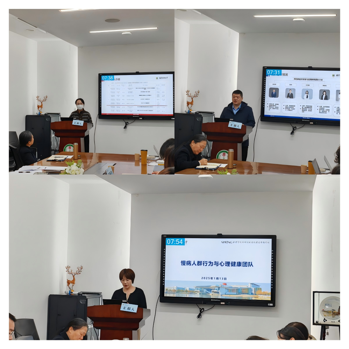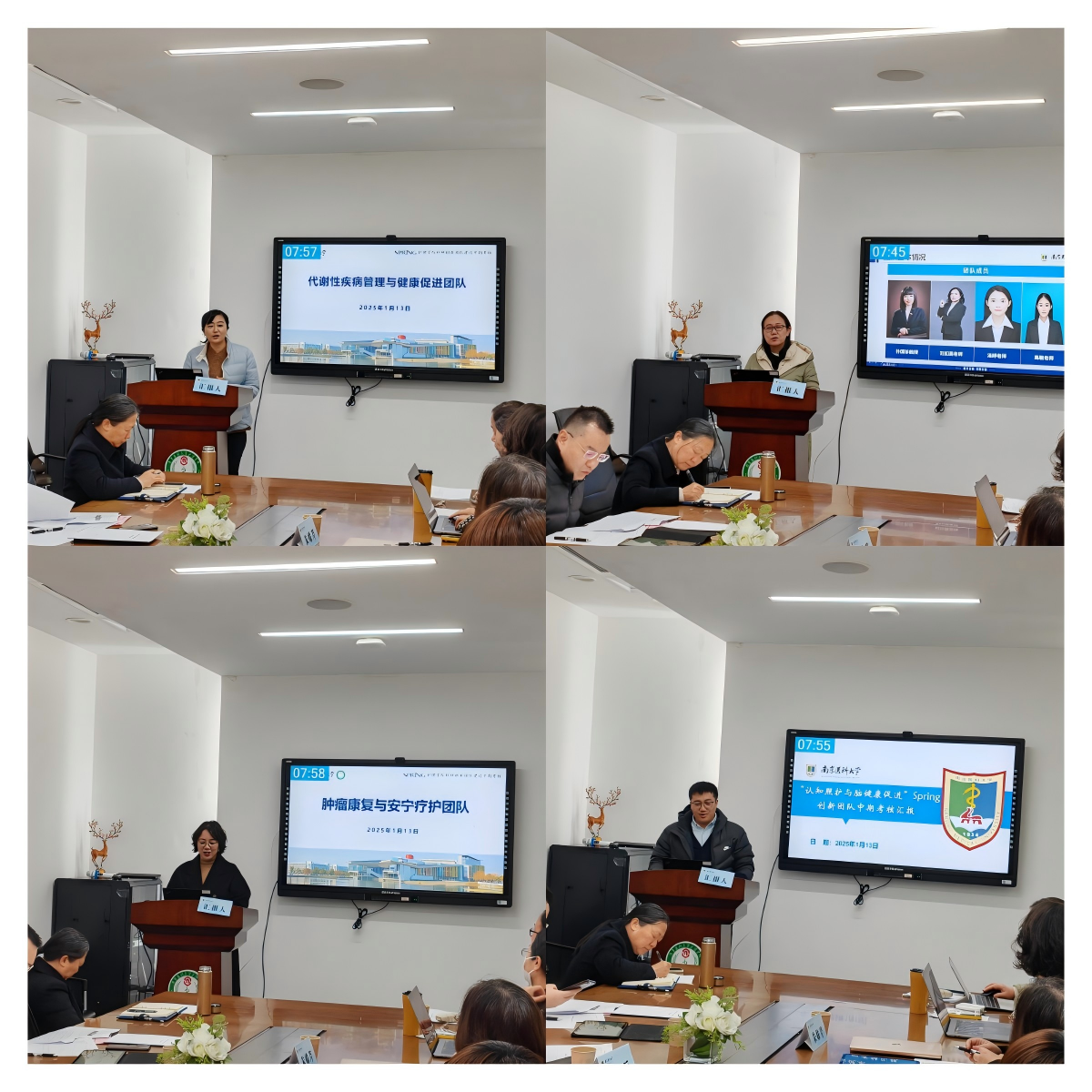 各团队负责人分别围绕“代谢性疾病管理与健康促进”“心肺疾病康复与数字化管理”“肿瘤康复与安宁疗护”“认知照护与脑健康促进”“智慧养老与科技应对”“筛检新技术研发与应用研究”“慢病人群行为与心理健康”七个主要研究方向,汇报了团队的基本情况、中期建设成果、经费使用情况以及下一阶段建设计划。