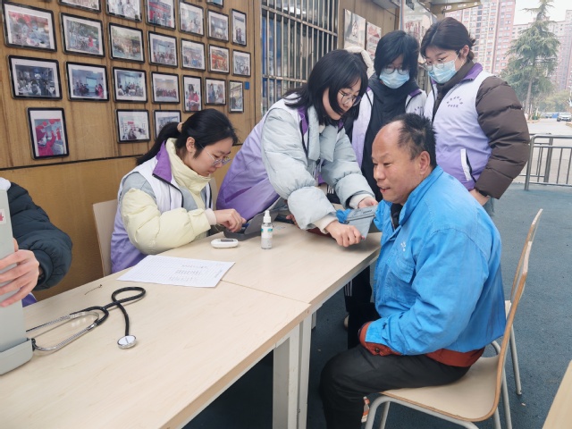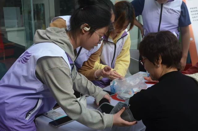 2月28日,学院南丁格尔养老照护志愿服务队与安宁驿站志愿服务队,作为学校“医心相伴”社会实践志愿服务矩阵团队成员,深入建邺区兴隆街道,开展“青春筑梦绽芳华,医路同行护健康”志愿服务活动。他们在现场为居民进行血压、血糖测量,以及健康科普知识宣讲。