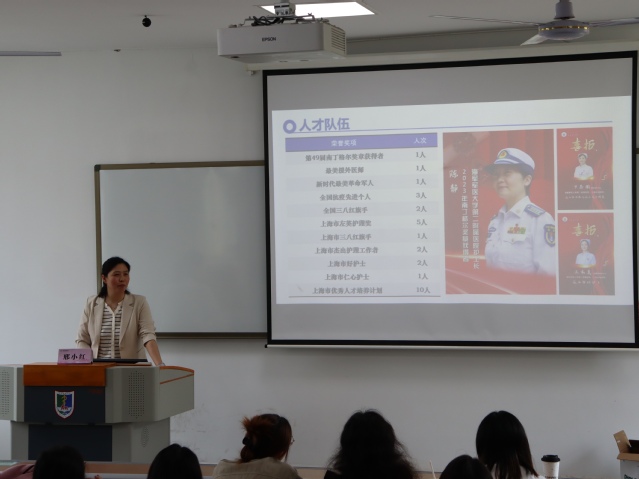 讲座中,上海长征医院护理处总护士长邢小红老师以 “护理视角下的国防力量” 为主题,结合自身丰富的临床经验和参与国防卫勤保障任务的经历,从多个维度展开讲述。邢小红老师通过真实生动的案例,向同学们展示了护理工作在国防建设中的关键作用,详细介绍了军队护理人员在战时医疗救护、灾难救援等紧急情况下的重要职责与突出贡献。“在灾难现场,每一秒都关乎生命,我们必须争分夺秒,用专业技能为伤员保驾护航。” 老师的话语掷地有声,让同学们深刻认识到护理工作与国防事业紧密相连。