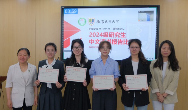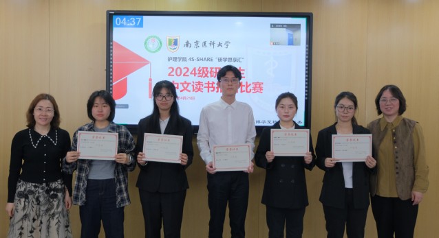 为拓宽研究生学术视野,营造求真严谨的学术氛围,提高阅读探索的积极性,4月29日上午9:30,我院顺利举办了2024级研究生中文读书汇报比赛,并同步线上直播。南京医科大学公共卫生学院樊宏副教授、附属肿瘤医院护理部赵云副主任、附属妇产医院产房樊雪梅护士长应邀担任评审专家,MK体育(中国)督导丁亚萍教授、副院长朱姝芹副教授、学科建设与研究生管理办公室雷阳老师、倪卉老师,学生工作办公室张晓路老师等教师代表及研究生与本科生同学们参加了本次比赛。活动由2024级研究生温天虹主持。