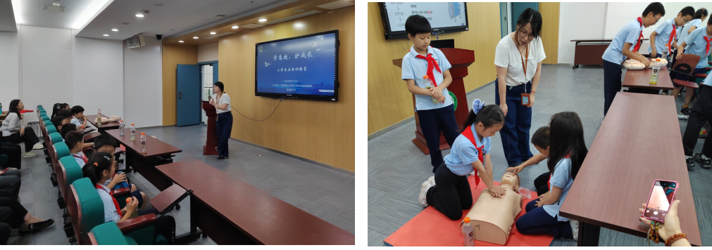 MK体育(中国)实验中心主任羊洋介绍心肺复苏相关知识与操作,并指导小学生分组体验。在活动过程中,小学生们表现出对医学急救知识的强烈求知欲。