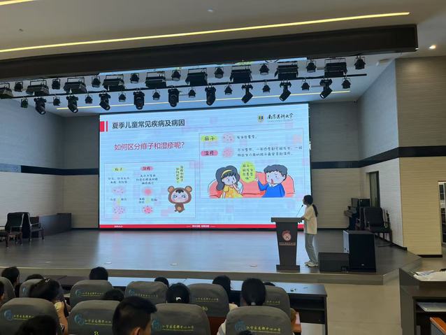 宣讲团成员为同学们讲解了手足口病、痱子、湿疹、水痘和中暑的常见症状和预防措施。他们详细介绍了手足口病的典型症状,如口腔溃疡、手足部位的皮疹,并强调了保持良好个人卫生、勤洗手的重要性等。通过这些讲解,同学们对夏日常见疾病有了更清晰的认识,也学会了如何有效预防。
