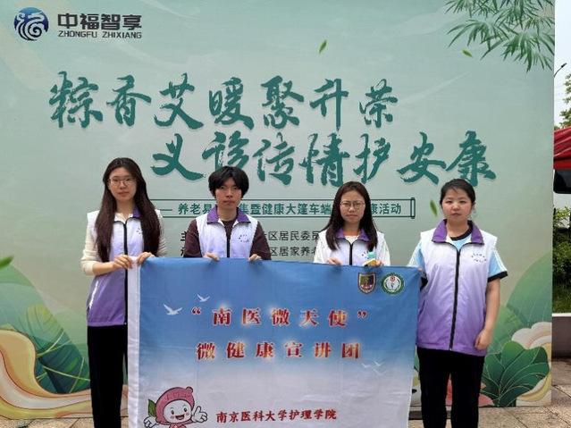 5月28日上午,mk体育在线官网“微天使”研究生微健康宣讲团受邀至建邺区升荣社区居家养老服务中心,参加“粽香艾暖聚升荣,义诊传情护安康”主题活动。此次活动以端午佳节为契机,通过健康服务与传统节日文化相融合,为社区老年人送去关怀与温暖,弘扬尊老敬老的传统美德,传递健康生活的理念。