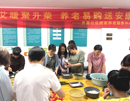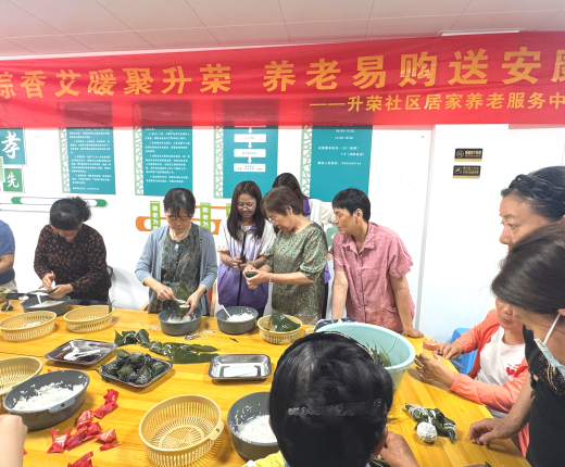 健康服务结束后,志愿者们与老人共同参与包粽子活动。桌上摆放着粽叶、糯米、红枣等材料,大家围坐一堂,边包粽子边聊家常。不少老人手把手教年轻人传统包粽技巧,现场欢声笑语不断。活动还穿插了端午节文化知识讲解,志愿者通过艾草香囊制作、端午习俗分享等环节,让老人在动手实践中感受节日氛围。社区的一位阿姨笑着说:“孩子们工作忙,很久没这么热闹地过节了,今天既学了健康知识,又尝到自己包的粽子,心里特别暖!”