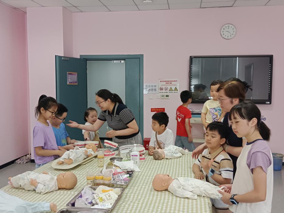 活动当天,大家首先于学海楼C455室集合,并拍摄集体照,留下了美好纪念。随后,邢颖老师带领孩子们前往实验中心,开展了一场生动有趣的科普教育。孩子们学习了听诊器的使用方法、心肺复苏的基本步骤,以及正确的刷牙和洗手方法,在体验中收获了实用的健康知识,增强了孩子们主动健康的意识。
