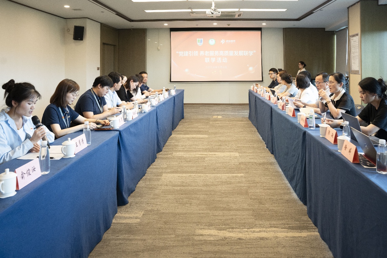 座谈会上,朱咏田总经理介绍了公司的发展历程、养老服务理念、多版块业务实践。他分享了公司在提供个性化专业定制养老照护服务过程中面临的挑战,期望未来能与学院在老年衰弱综合征干预、认知症照护等医养结合领域深化合作。许勤院长介绍了学院护理学科的发展概况及特色优势,并着重就养老机构服务标准建设、引领养老行业高质量发展分享见解。在交流环节,银城康养运营助理总监(认知症方向)罗珊珍、银城康养医疗专业经理皮立平分别介绍了业务特色与需求。学院高兰天副书记、副院长,SPRING创新团队成员与银城康养运营管理部总监潘丽芳、银城康养护理之家院长张晓岚、银城康养君颐东方生活服务中心总监袁婷等围绕主动健康管理、老年衰弱管理、认知症照护等核心议题展开深入交流。