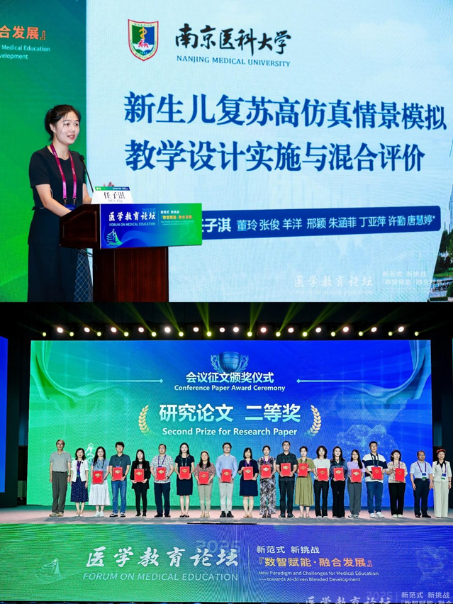 我院情景模拟教研团队任子淇、唐慧婷老师的研究论文《新生儿复苏高仿真情景模拟教学设计实施与混合评价》荣获“研究论文二等奖”,并受邀在“分论坛六:医学模拟教育”进行口头汇报与分享交流。该研究将高仿真模拟教学应用于新生儿复苏教学实践,通过高度还原的临床场景和动态病情变化设计,有效培养了学生的临床思维、团队协作和问题解决能力。研究结果证实,该教学模式不仅实现了理论知识向实践能力的转化,更在培养学生评判性思维、提升职业素养以及融入思政教育方面取得了显著成效。