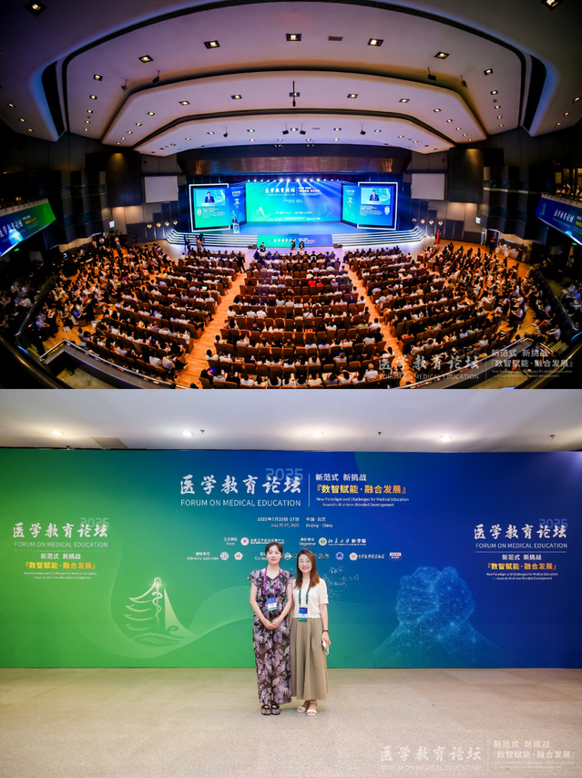 2025年7月25~27日,由中国高等教育学会医学教育专业委员会、中华医学会医学教育分会指导,全国医学教育发展中心主办,北京大学医学部承办的“医学教育论坛(2025)”在北京国际会议中心隆重召开。本次论坛以“新范式 新挑战:数智赋能·融合发展”为主题,设置了主论坛、专家咨询会、10场分论坛、20场工作坊,涵盖104场专题学术报告、31场口头报告与22项海报交流活动。来自全球18个国家/地区、230余家院校机构的2000余名医学教育专家学者齐聚一堂,共谋医学教育创新发展路径。我院情景模拟教研团队代表、临床护理学系唐慧婷、任子淇受邀参会。