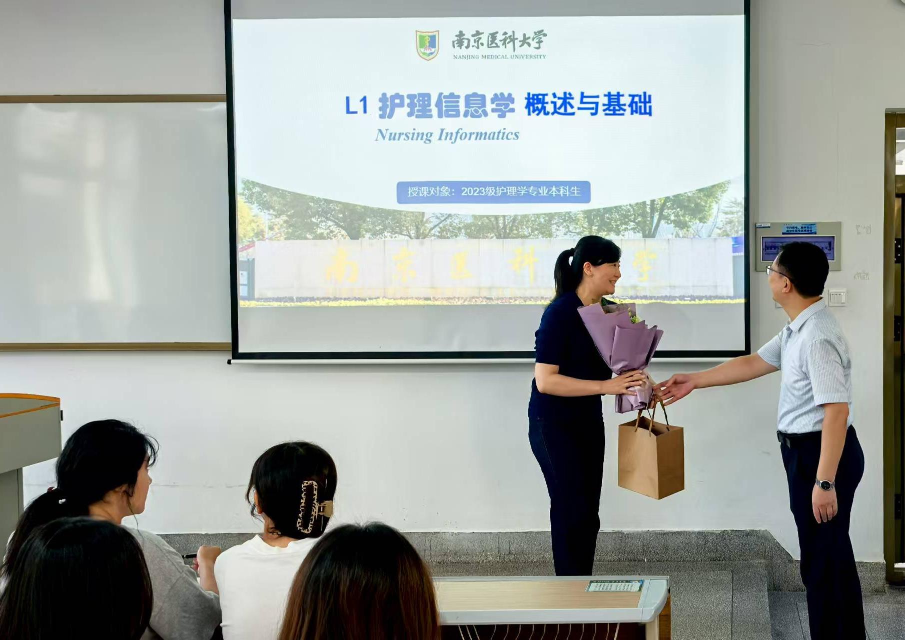 嵇艳副院长向《护理伦理学》李勇老师赠送花束