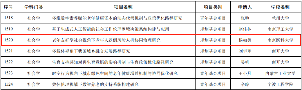 近日,教育部社科司公布2025年度教育部人文社会科学研究一般项目评审结果,我院朱姝芹教授主持的《定价传导视角下医保支付标准对普惠性安宁疗护体系建设的倒逼效应研究》与杨如美主任主持的《老年友好型社会视角下老年人跌倒风险人机协同治理研究》成功获批立项并资助,标志着我院在人文社科研究领域再度实现重要突破。